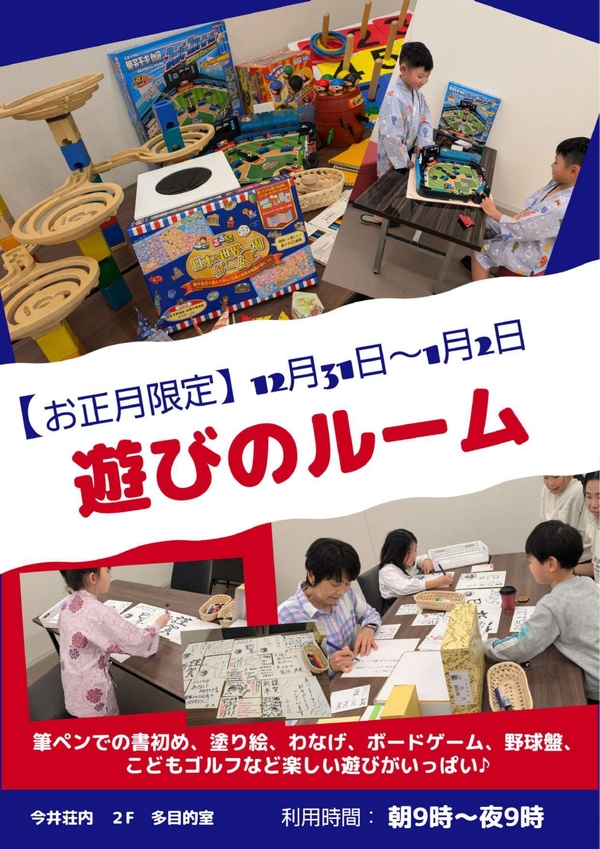 年末年始にご宿泊のお客様へ、期間限定の「遊びのルーム」をご用意いたしました。
